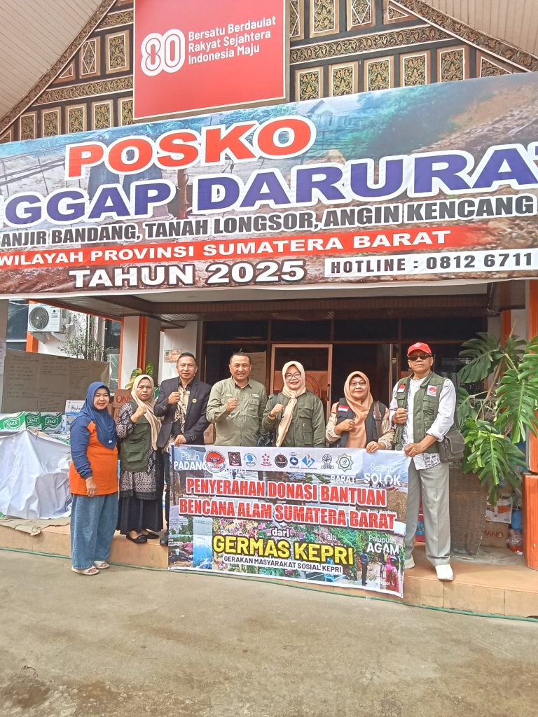 BATAM – Gerakan Masyarakat Sosial (GERMAS) Kepulauan Riau kembali menunjukkan kepedulian sosial dengan menyalurkan bantuan kemanusiaan bagi korban bencana alam di Sumatra Barat. Bantuan tersebut merupakan hasil penggalangan dana yang hampir satu bulan dilakukan GERMAS Kepri di Kota Batam.