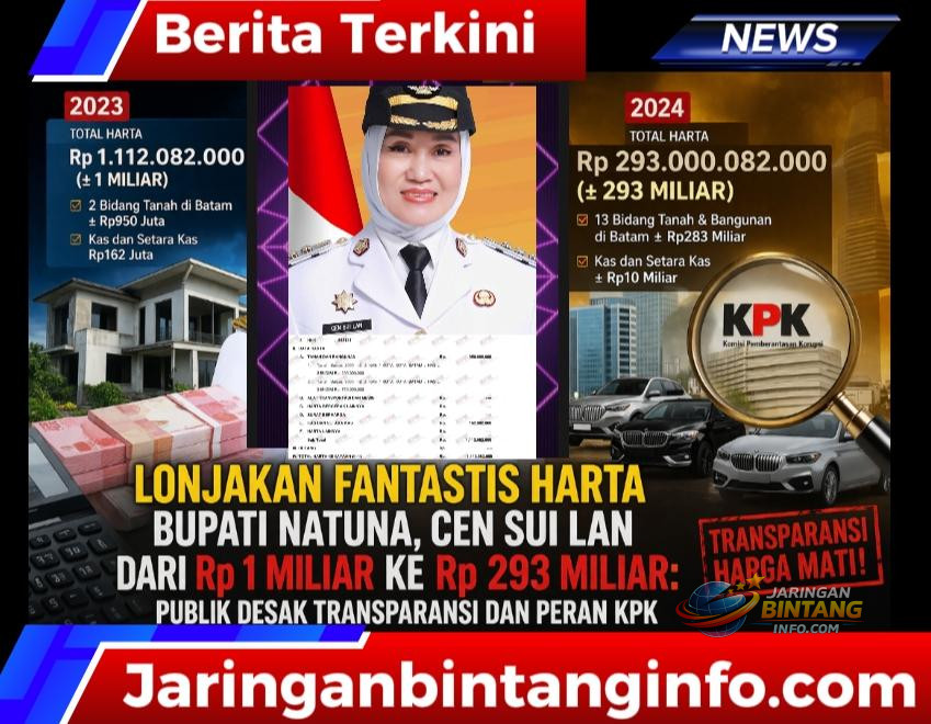 Natuna-Lonjakan harta kekayaan Bupati Natuna, Cen Sui Lan, dalam kurun waktu satu tahun menjadi sorotan tajam publik dan memicu pertanyaan serius terkait transparansi serta akuntabilitas pejabat negara. Kamis 2/4/2026.