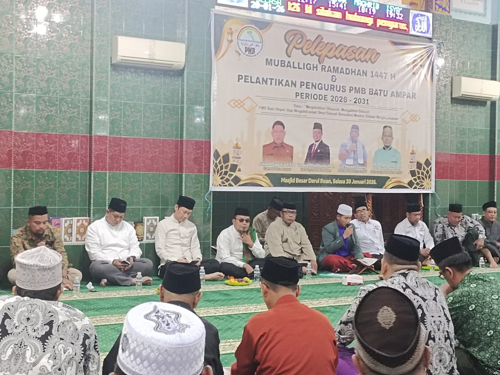 Mengokohkan ukhuwah meneguhkan dakwah PMB Batu Ampar siap mengabdi untuk umat dakwah Ramadhan menebar rahmat merajut persatuan Pelantikan PMB Batu Ampar (perkumpulan muballigh batam) dalam menyambut bulan suci Ramadhan adalah agenda penting yang dilakukan oleh organisasi Islam atau pemerintah daerah. Kegiatan ini bertujuan untuk memastikan para pendakwah siap secara fisik, mental, dan keilmuan dalam menyampaikan syiar Islam, memberikan kesejukan, serta memandu ibadah umat selama bulan Ramadhan.